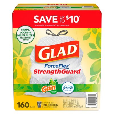 Glad ForceFlex 13-Gallon Kitchen Trash Bags, Gain Original Scent + Febreze, 160 ct.